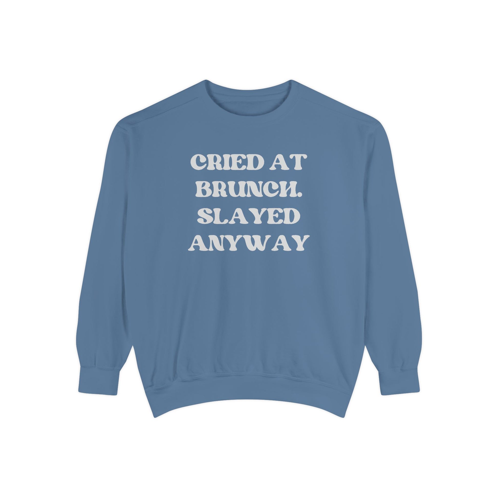 Cried at Brunch. Slayed Anyway Unisex Garment-Dyed Sweatshirt
